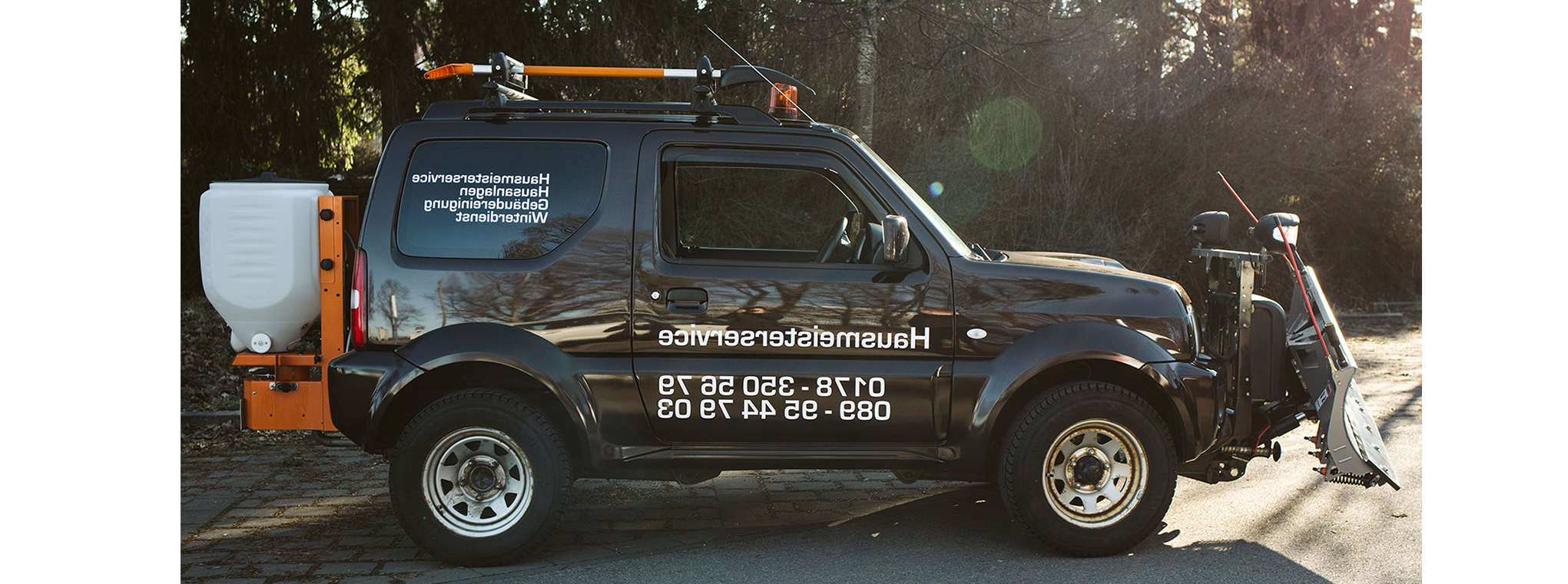 Schnee räume ich sowohl mit einem speziell präparierten Fahrzeug als auch manuell.